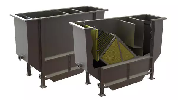 La segregación de líquidos por parte de la CPI TiPSS se basa en la diferencia de densidad y en la viscosidad. Las placas laminares del CPI atrapan las gotas libres haciendo que suba a la superficie y formando así una capa. La capa flotante puede eliminarse mediante el espumado. Un sistema de control de nivel estático permite que el agua limpia salga de la unidad CPI para su posterior tratamiento.